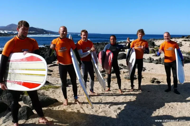 Ofreciendo los mejores campamentos de surf en Lanzarote, Islas Canarias, en la Playa de Famara.