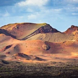 A Lanzarote sono registrati circa 300 vulcani e due catene montuose, la Rupe Famara, a Teguise, e il Massiccio Betancuria a Yaiza.